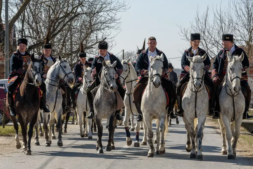 Pojedini građani Pokladnu povorku dočekuju ispred svojih kuća, nudeći sudionike hranom i pićem, uz pjesmu i tamburicu.