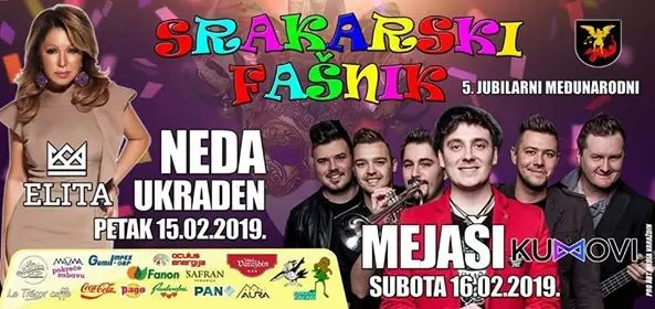Uz veliku povorku maškara, posjetitelje očekuje i bogati glazbeni program, pa će tako u petak u velikom šatoru nastupiti Neda Ukraden i Tango bend, dok je subota rezervirana za pravu tamburašku poslasticu – Mejaše i Kumove.